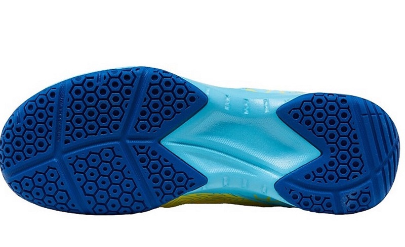 - Đế giày thiết kế 2 lớp đế kép, cao su non chống sự mài mòn cao, các rãnh hình tổ ong mang lại độ bán sân tốt hơn và ổn định hơn khi bật nhảy.