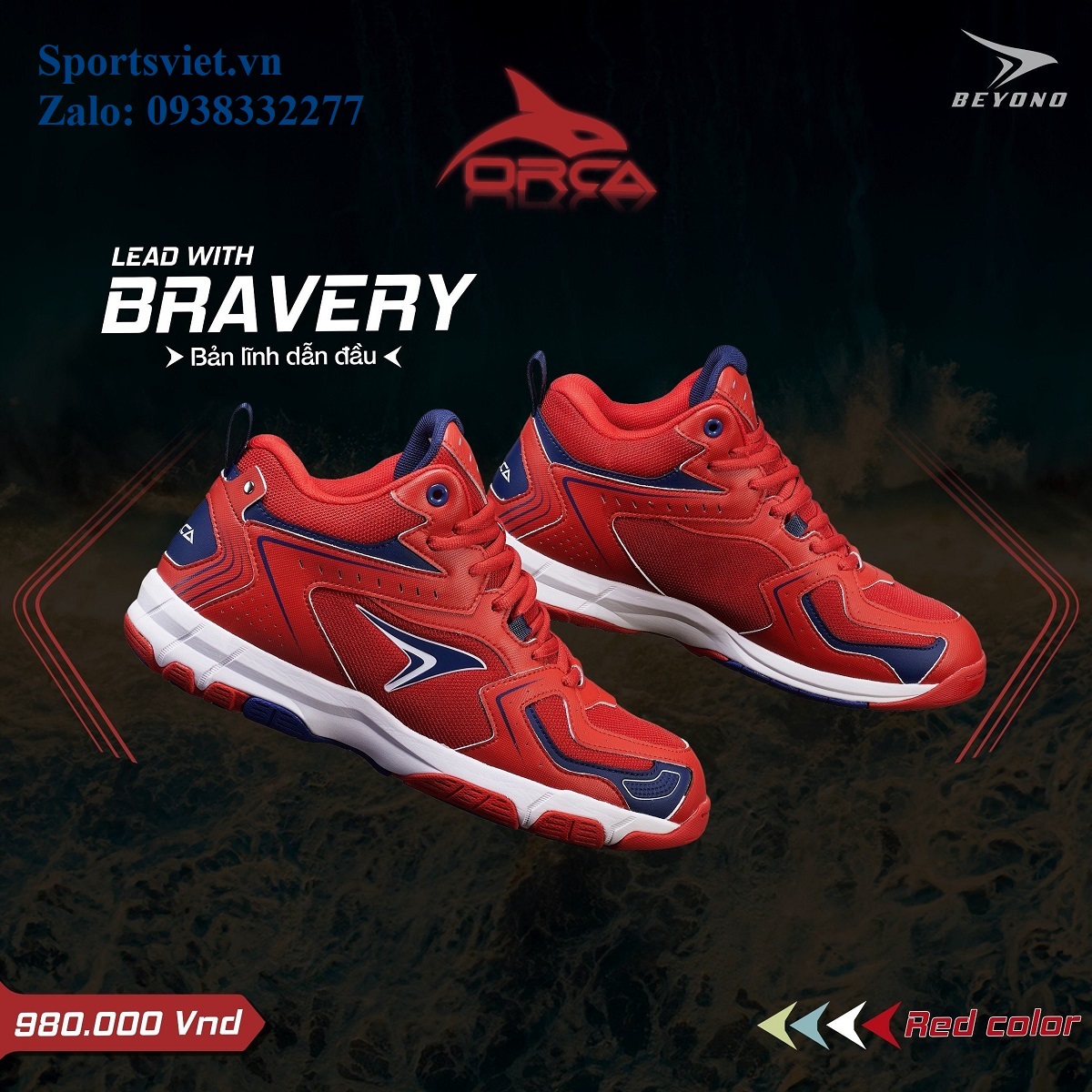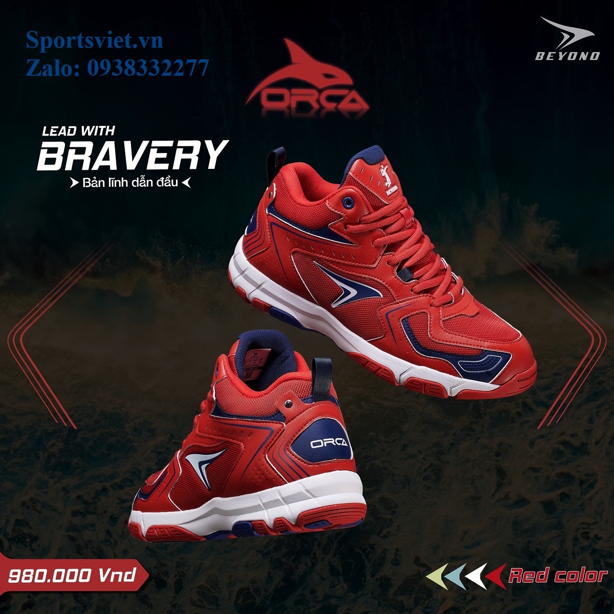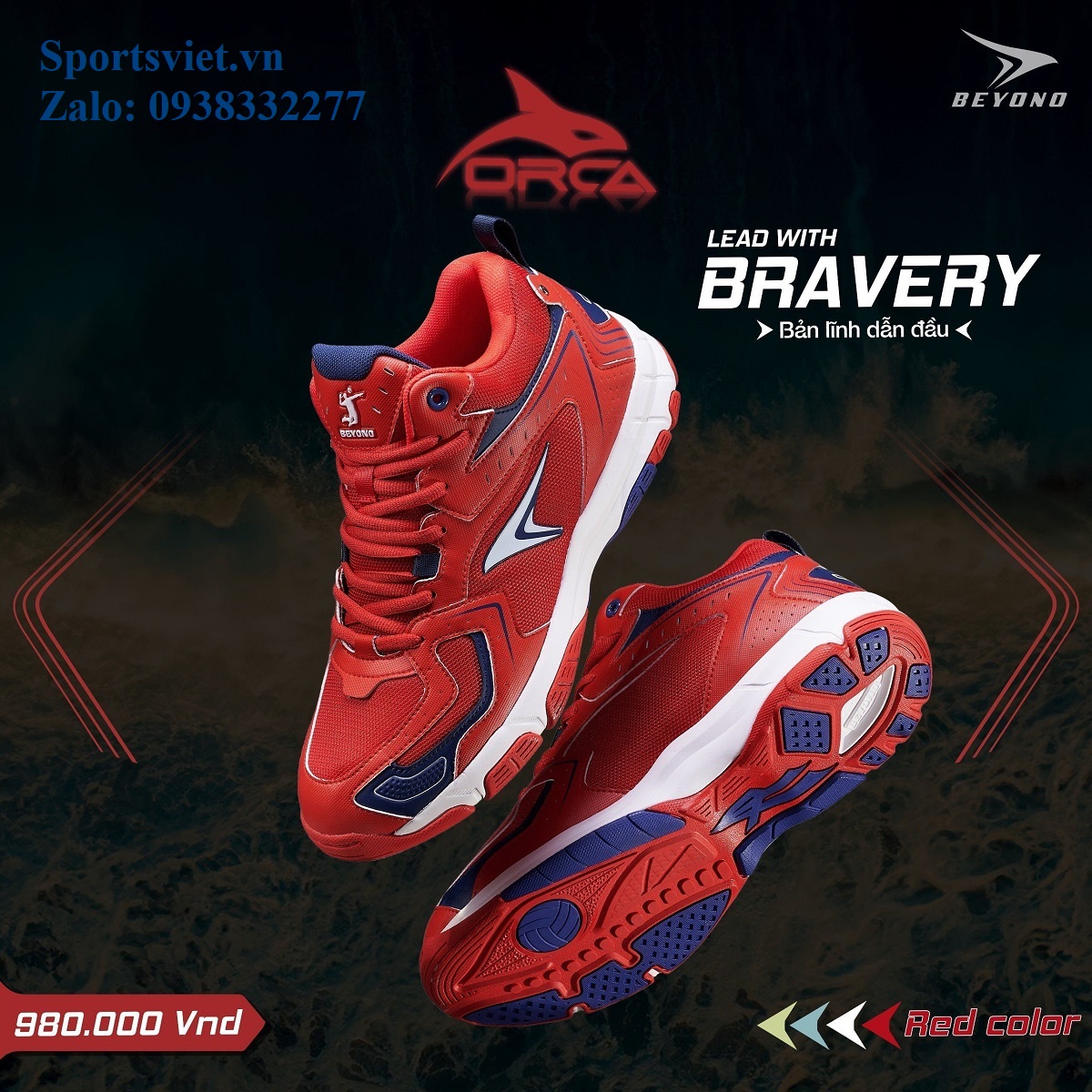 Giày đánh bóng chuyền nam nữ cày sân bê tông chính hãng siêu êm bền nhẹ Beyono Orca màu đỏ/trắng/xanh chuyên nghiệp cao cấp