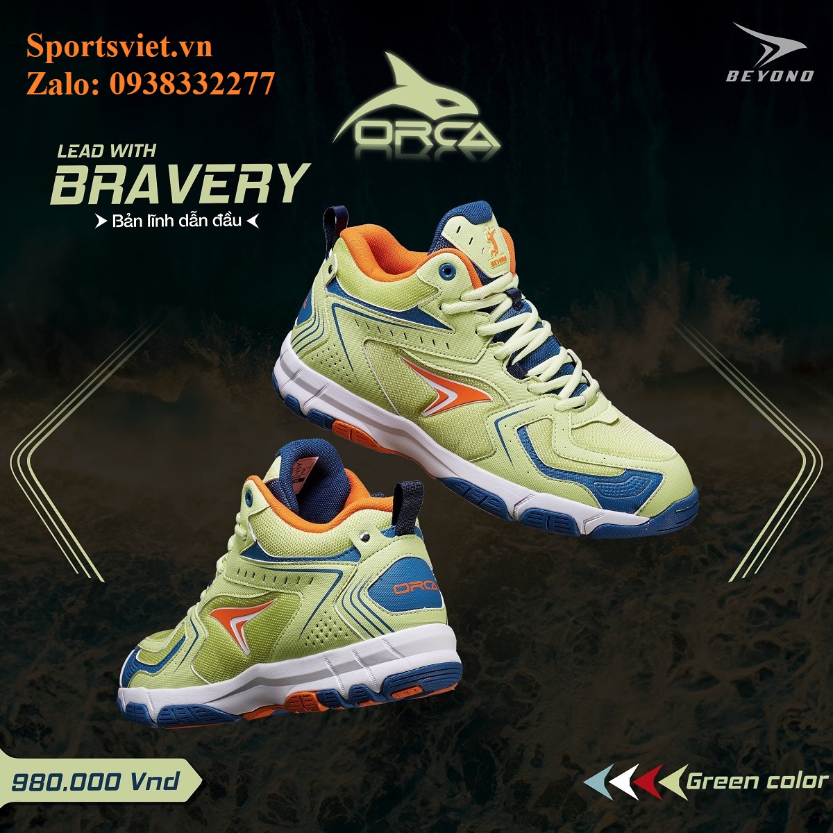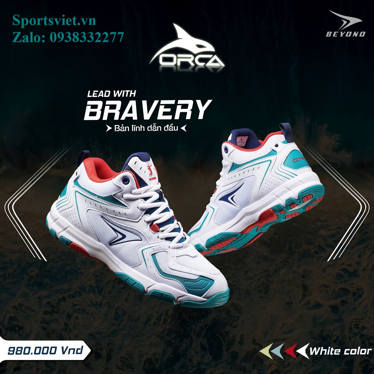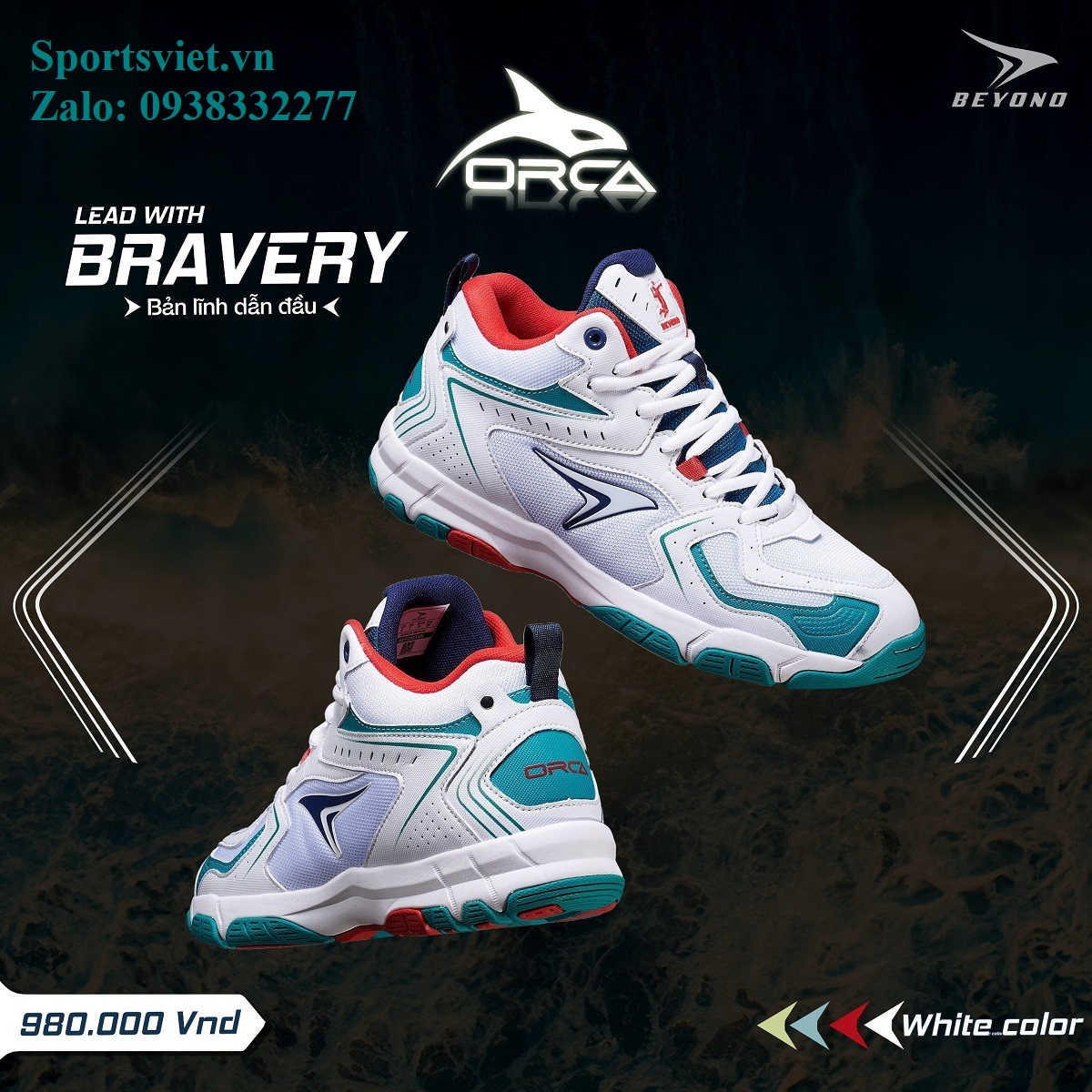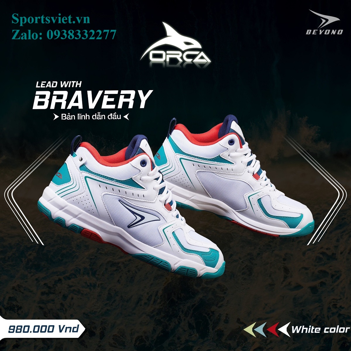 Giày đánh bóng chuyền nam nữ cày sân bê tông chính hãng siêu êm bền nhẹ Beyono Orca màu đỏ/trắng/xanh chuyên nghiệp cao cấp