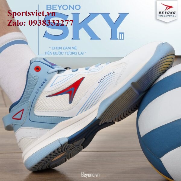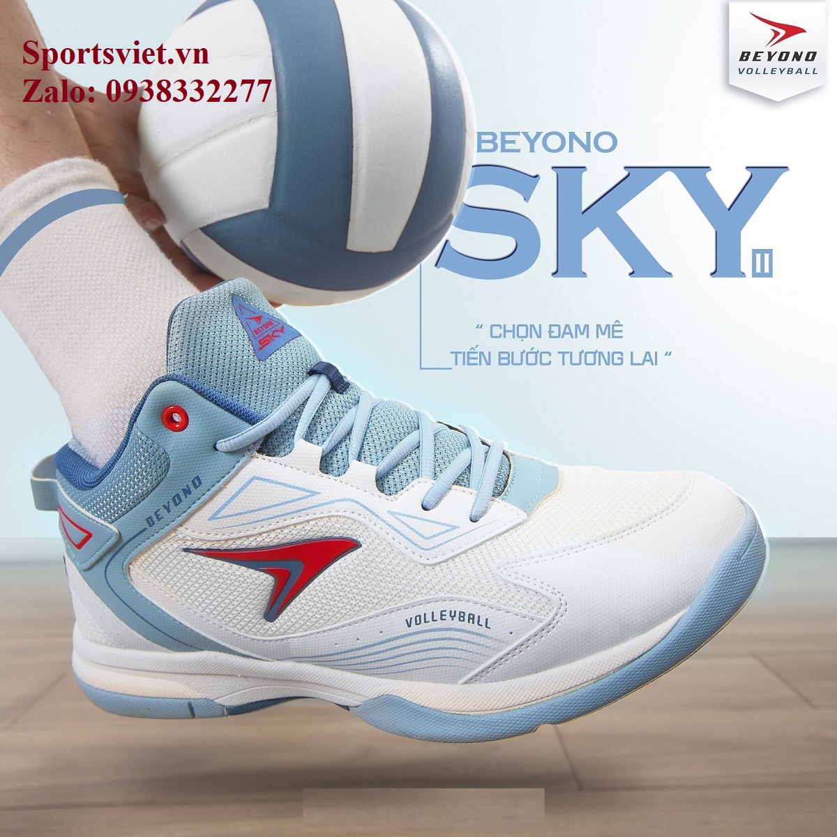 Giày đánh bóng chuyền nam nữ cày sân bê tông chính hãng siêu êm bền nhẹ Beyono Sky màu đỏ/trắng/xanh chuyên nghiệp cao cấp