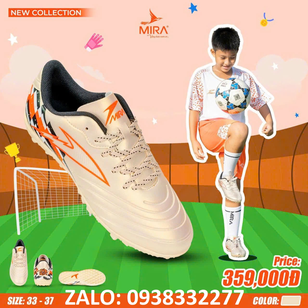Giày đá bóng, đá banh sân cỏ nhân tạo cổ thấp Mira Carnix Kid - Giày đá banh đá bóng Mira chính hãng giá rẻ dành cho bé trai, bé gái, học sinh, sinh viên nhiều màu lựa chọn: Giày bóng đá giá rẻ màu xanh dương, màu tím, màu đỏ, màu kem...