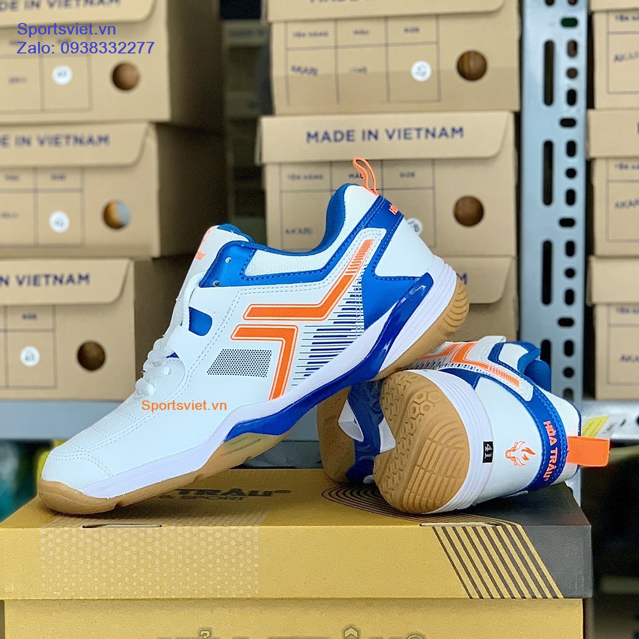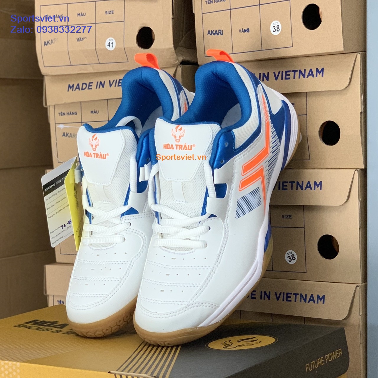 Giày cầu lông Hỏa Trâu nam màu trắng xanh chính hãng giá rẻ
