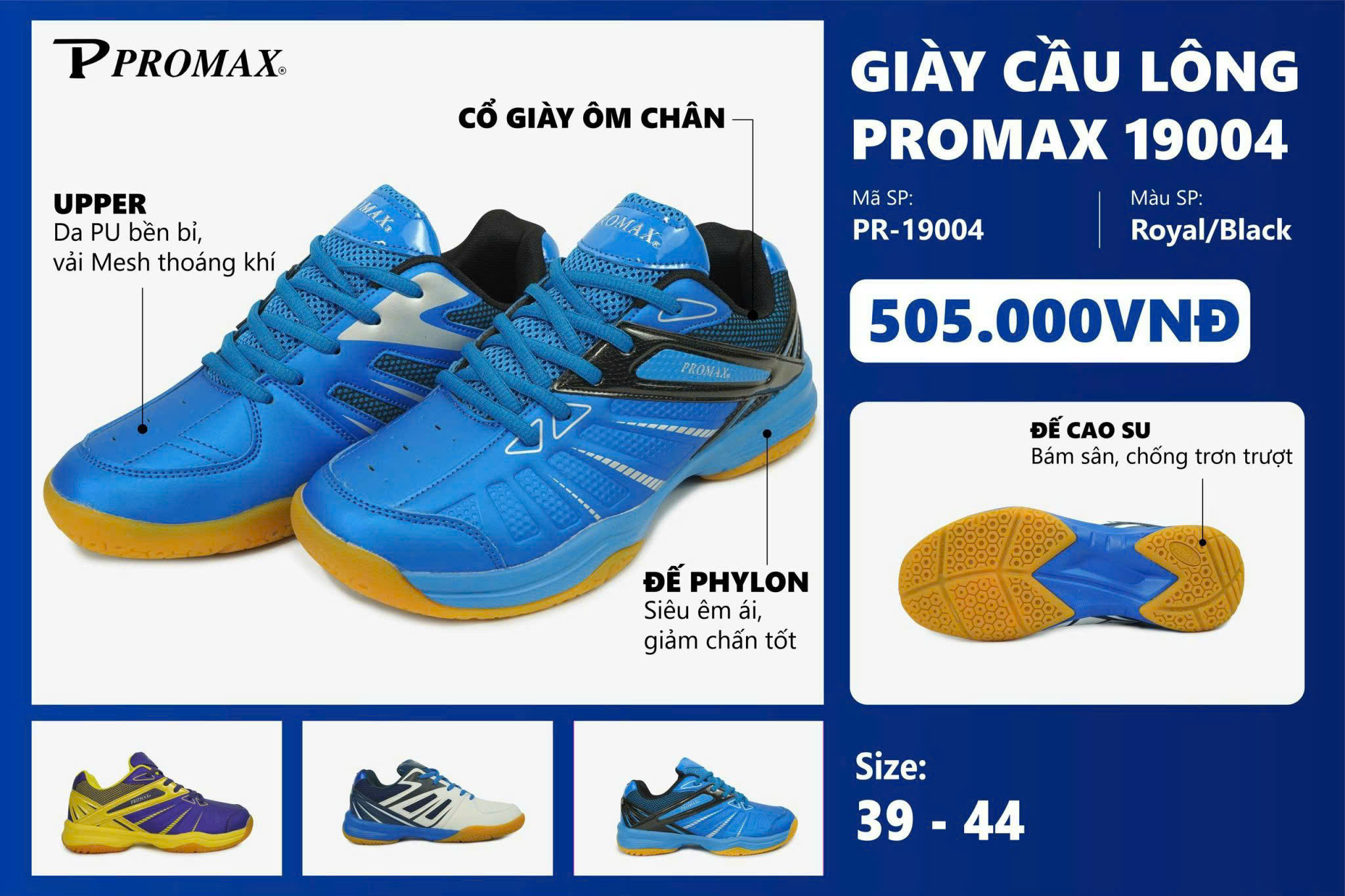 - Giày cầu lông Promax có nhiều màu để lựa chọn như: Trắng xanh, Xanh nước biển.SPORTSVIET.VN CHUYÊN CUNG CẤP:
