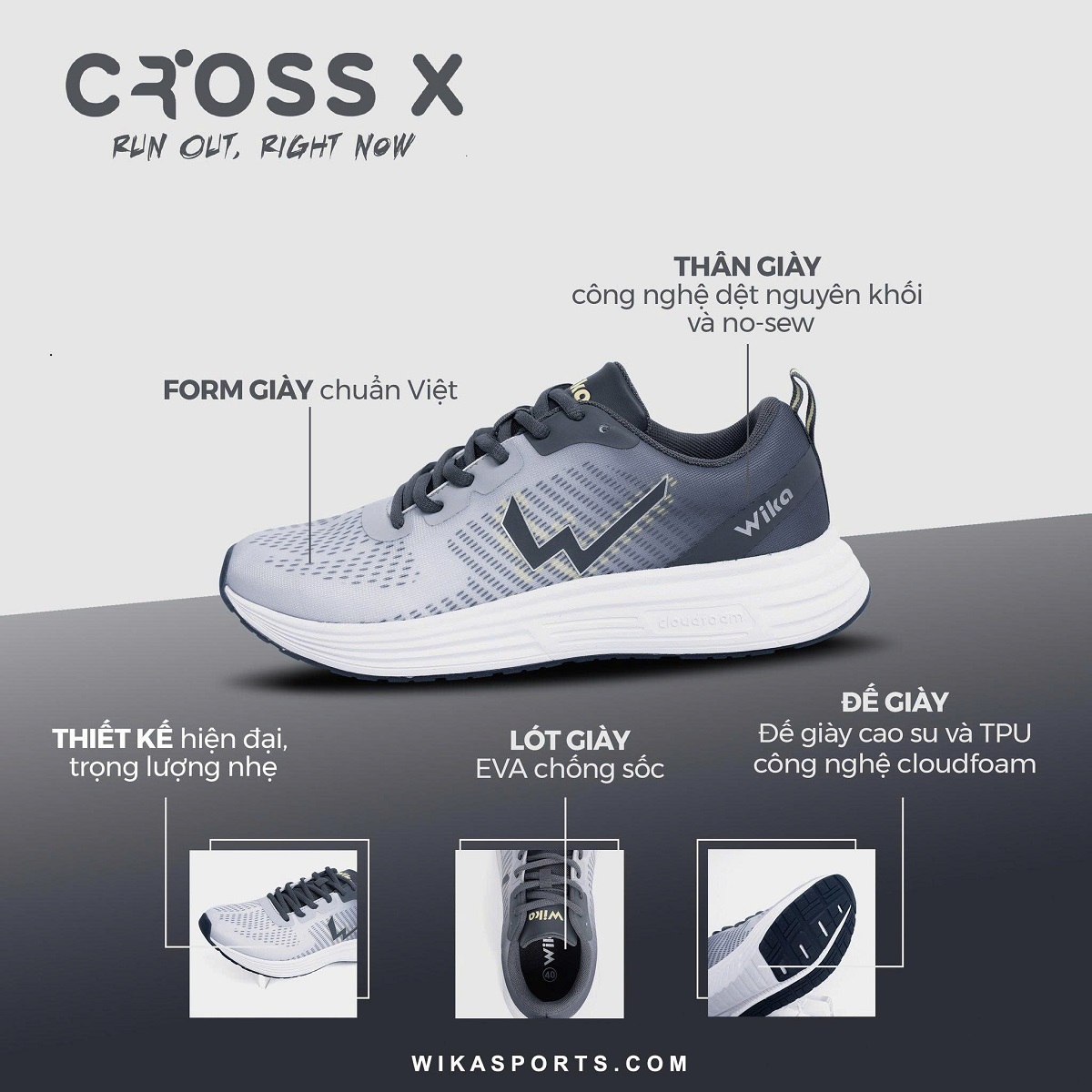 Hình ảnh sản phẩm: Giày chạy bộ Wika Cross X chuyên dụng cho: Chạy bộ, tập GYM, đi bộ, đi làm, shopping, dã ngoại thể thao đa năng