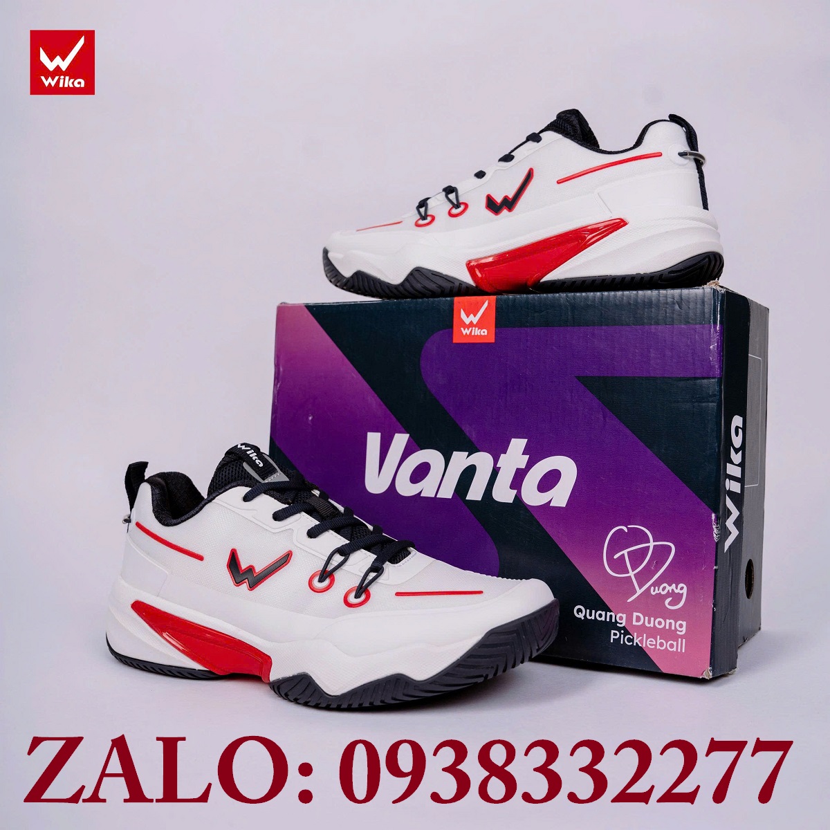 Giày Pickleball Wika Vanta trắng đỏ nam nữ chính hãng giá rẻ (nhiều màu: Xám, tím, Màu xanh dương, xanh đen navy, trắng đỏ, trắng xanh chuối, xanh ngọc). Sản phẩm có thể kết hợp chơi Tennis chuyên nghiệp - Liên hệ: 0938332277 - GIÀY PICKLEBALL WIKA Quang Dương Vanta.