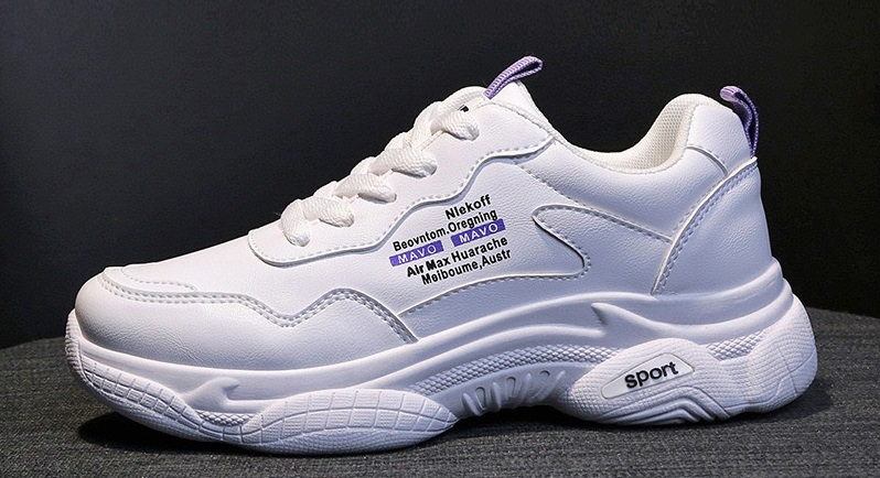- Thân giày màu trắng phối tạo điểm nhấn màu tím nhẹ nhàng làm cho đôi giày nổi bật hơn, Toàn bộ thân giày được làm bằng chất liệu da PU cao cấp mềm mịn và độ bền cao, đường may chắc chắn và tỉ mỉ.