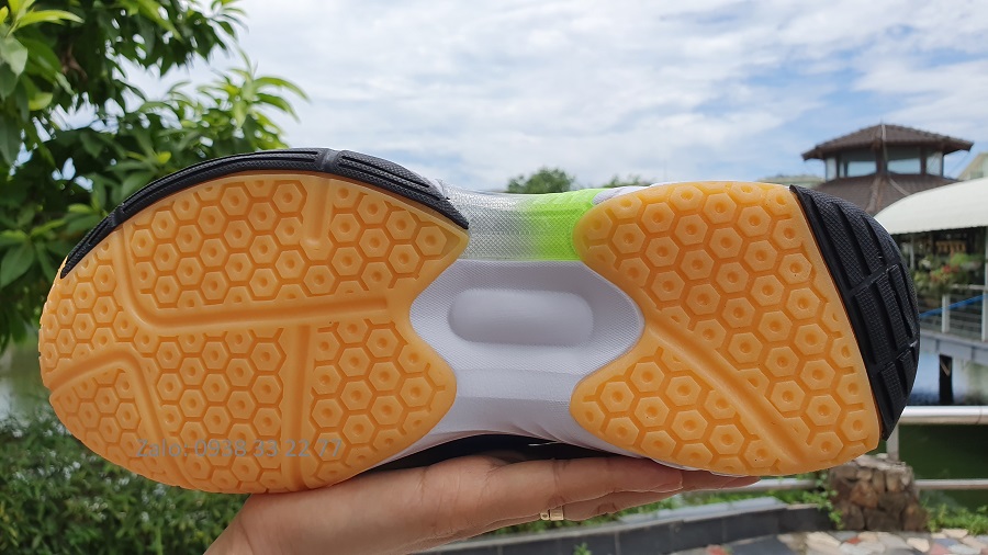 - Đế ngoài được làm từ cao su tự nhiên chống mài mòn cao, chất lượng đạt chuẩn. Mặt đế thiết kế cấu trúc rãnh sâu, giúp di chuyển linh hoạt nhưng bám sân tốt, không bị trơn trượt.